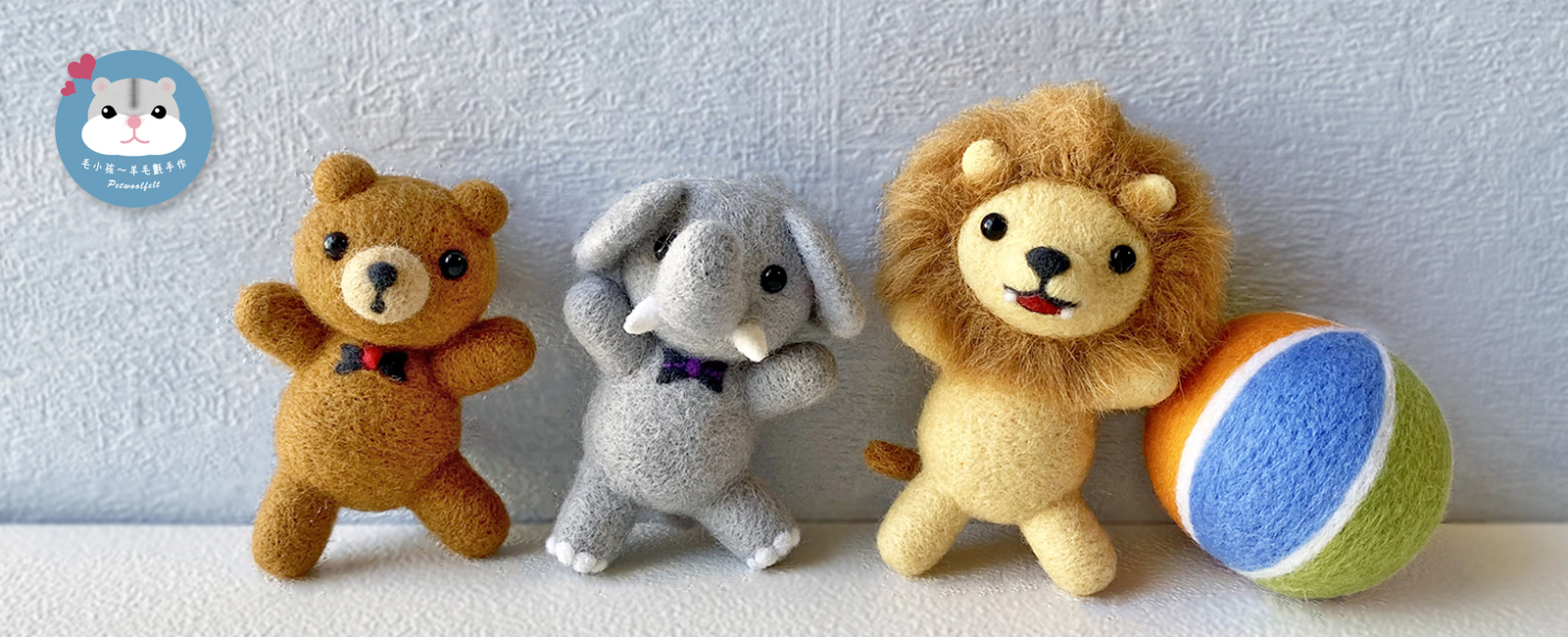 以羊毛這種天然又溫暖素材,設計讓人感到幸福愉快的作品,”毛小孩”除了代表動物,也代表了每一件手作品都是心血結晶,就像自己的小孩一樣珍貴和獨特。