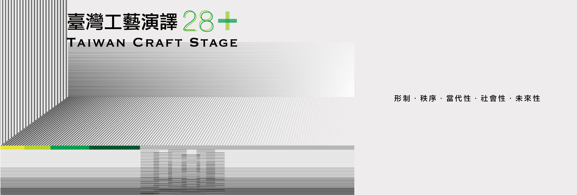 臺灣工藝產業發展隨著政經社會變遷,每個時代有不同對應且眾多支持產業發展的方式,「競賽」即其中一種。展覽以「臺灣工藝演譯28+」為主題,以「舞臺」概念展現臺灣工藝競賽28年來諸多創作面貌,再度登臺演繹一幕又一幕精采的戲碼。