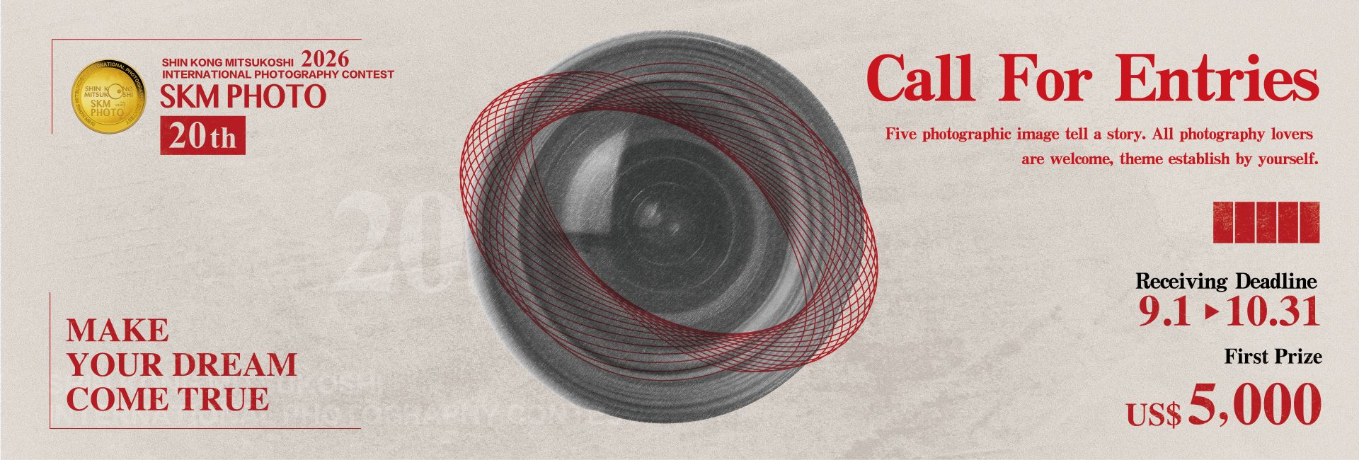 The "SKM PHOTO Shin Kong Mitsukoshi International Photography Contest" is a platform created for professional photographers, serving as a starting point for making your dreams come true. This event encourages photographers to create a series of five works based on self-defined themes, allowing them to "deconstruct" the perspective of visual art in photography. It prompts them to think about the structure and flow of their work, to break down the unique visual elements captured through the viewfinder, and to convey a personal and cohesive creative concept and visual art style. It is a challenge that invites participants to explore their preferred photography styles and embark on a journey towards realizing their dreams!