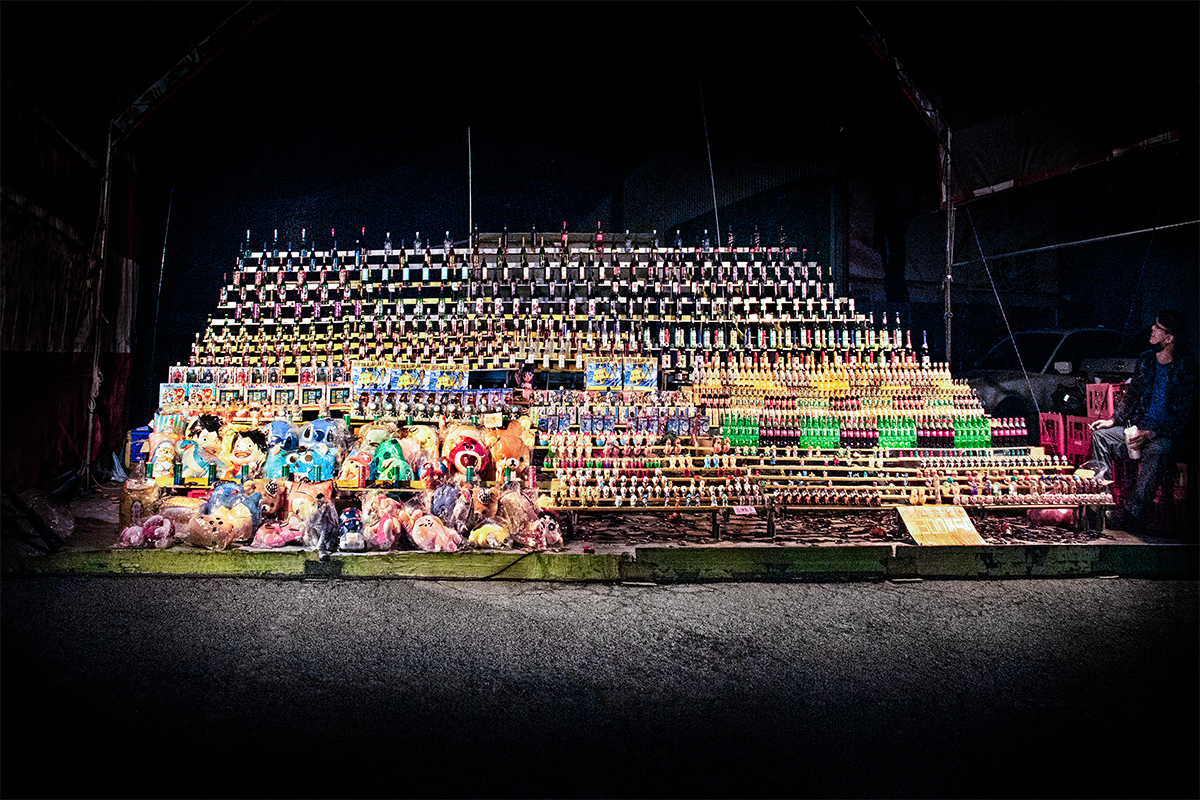 去年初新一波疫情又來時,原本熙攘的夜市又漸冷清。面對清淡的生意,攤販只能低頭滑滑手機,整理商品。在夜色燈光下各色各樣的貨品恣意地展示著,琳瑯滿目。商家們只求疫情快點結束,恢復往常日熱鬧景況。
