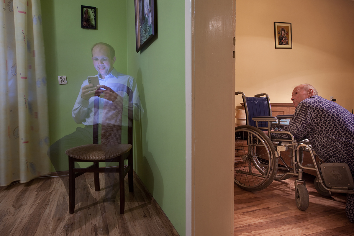I wonder how it is possible that people can be so detached from reality, can communicate with a complete stranger thousands of kilometers away, and at the same time ignore the person next to them. I showed this disturbed relationship on the actual example.