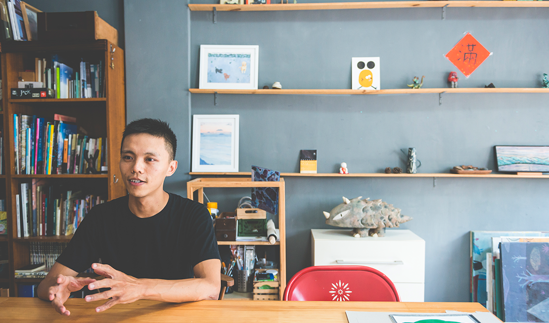 原沒打算以畫畫維生的他,畢業後因著所學,在國小擔任代課老師,HOM 說起那段日子很是焦慮,這也是在訪談過程中第一次聽到他情緒幾近崩潰語調,「我發現我真的完全不能畫圖,竟然是這麼難受的事!」HOM 似笑非笑地說。