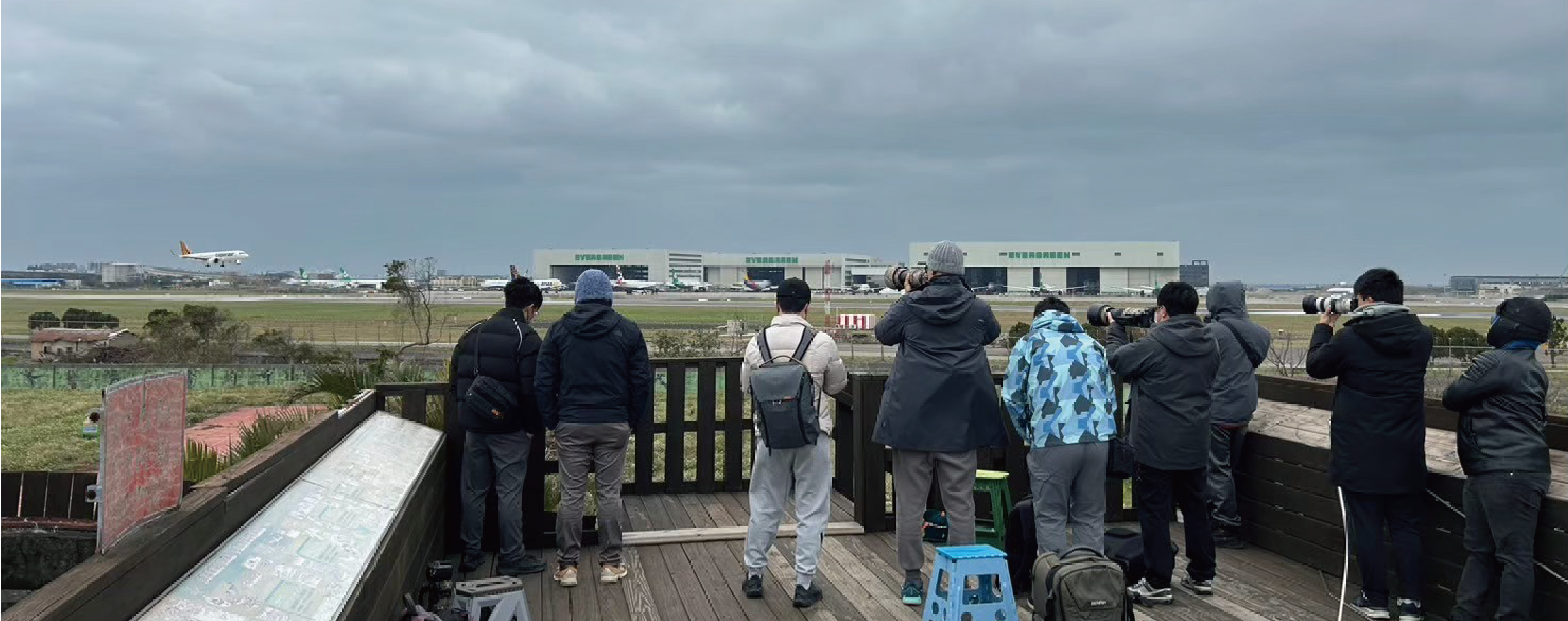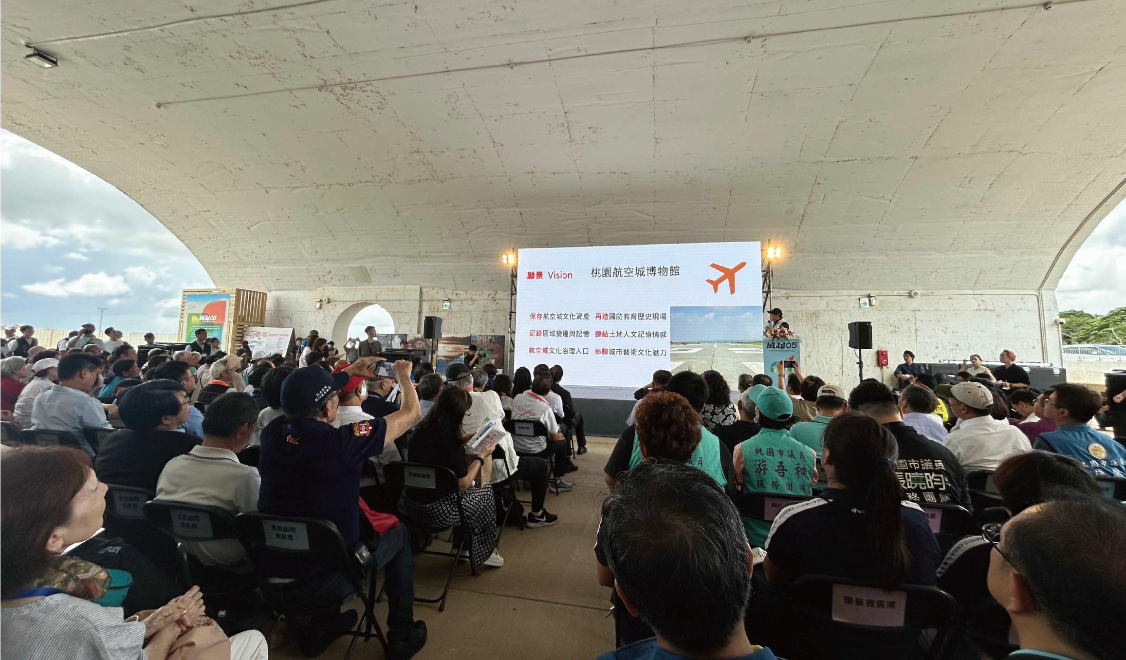 在拍攝與等待之間,記錄土地的進程 六月,俊耀拍攝了大園區的村莊並蒐集相關資料;七月的第一週,他著重拍攝區域開發後的地景變化;第二週則受邀參與「05警戒區」航空城博物館的開幕記者會,結識多位在地居民與陳康國小周邊的拆遷戶;第三週,他前往竹圍漁港與航空相關地景進行拍攝;第四週則進行照片輸出、色調修整與影片拍攝。這一連串行動構成了《絕境航空城 TAKE-OFF》第二階段的具體輪廓,也讓他更深刻地意識到「記錄」不只是捕捉,而是一種與現場共同呼吸的過程。