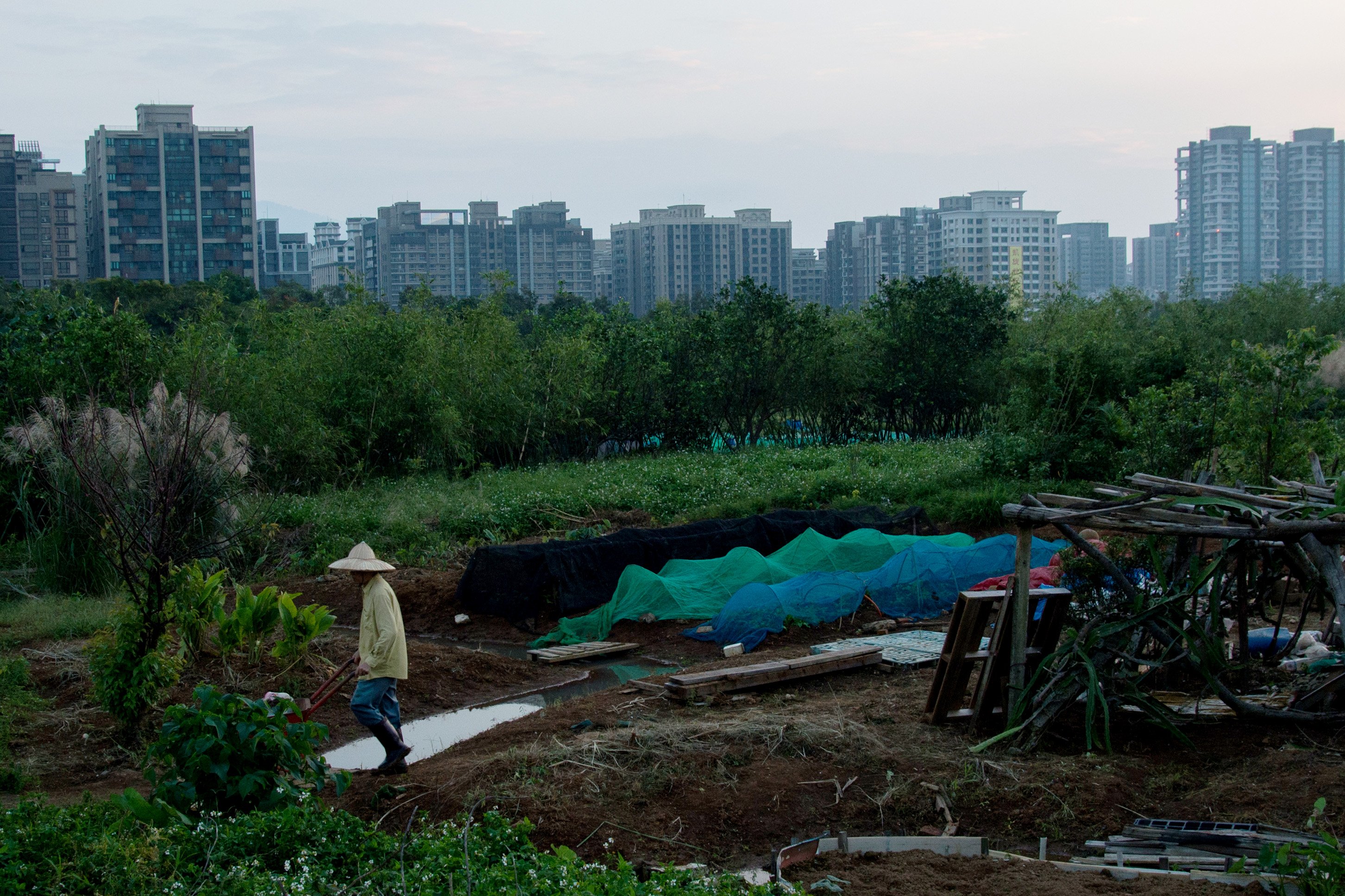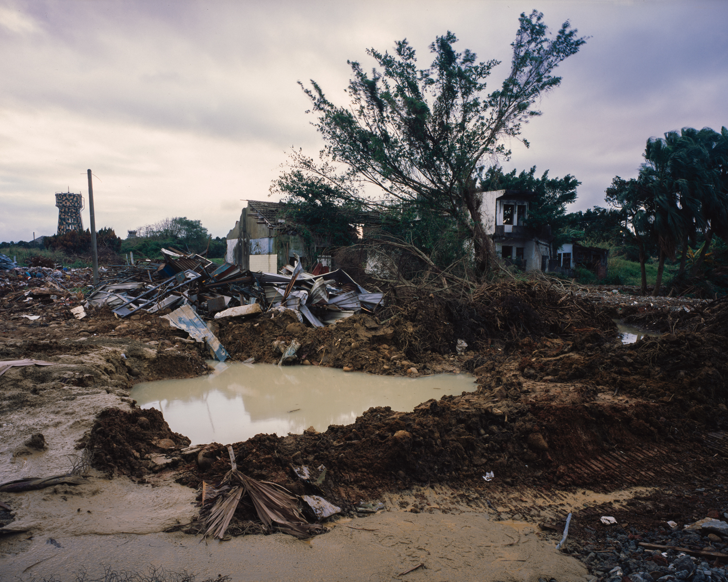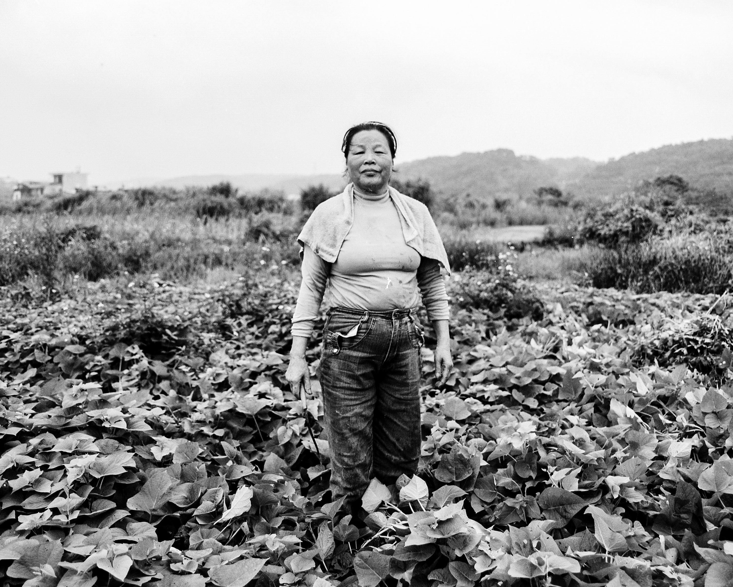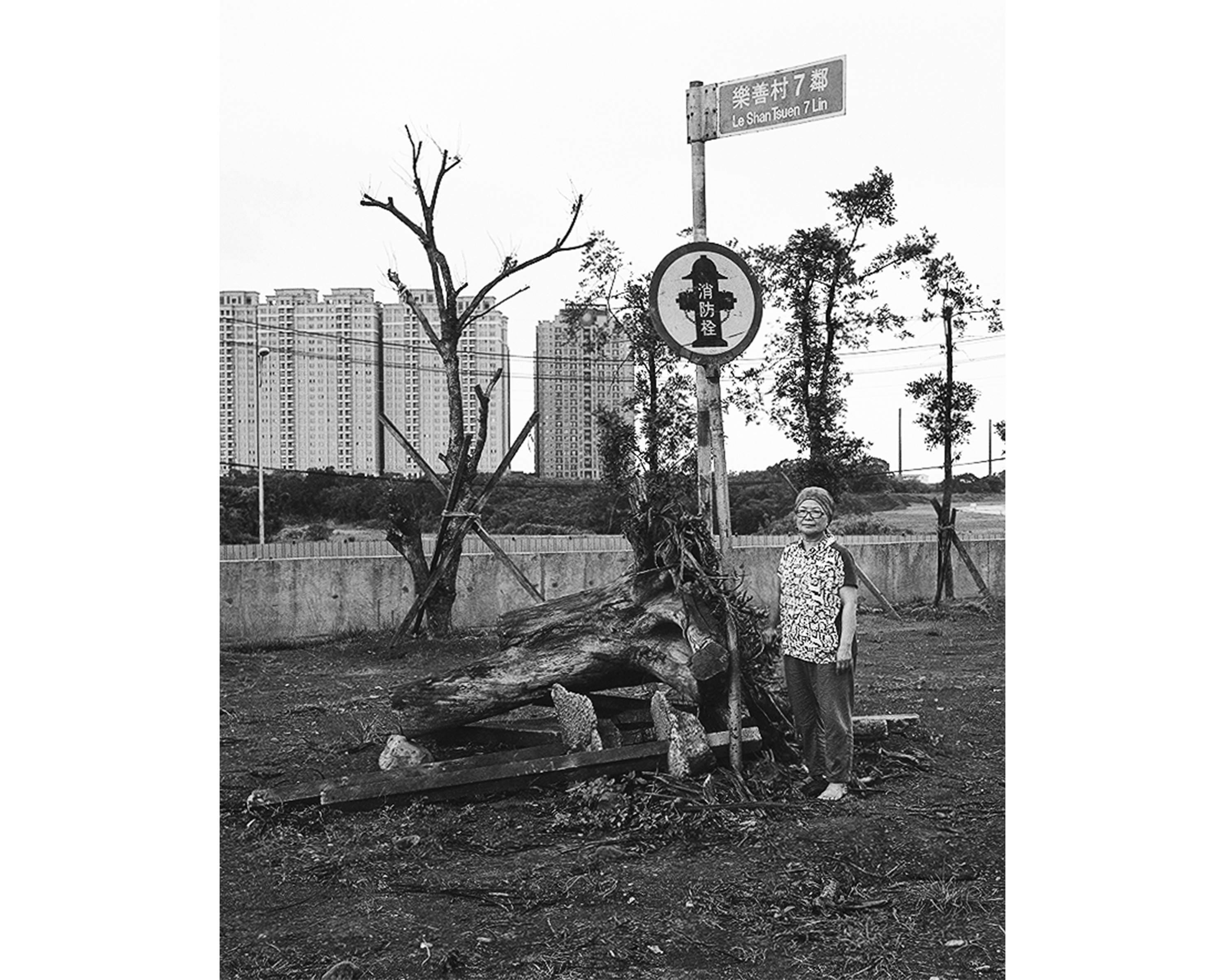 幾年前,他曾在這裡拍下一位農民。對方站在自己的田中央,直視鏡頭。那時土地還在,人也還在。但這一次回來,村子已經不見了。