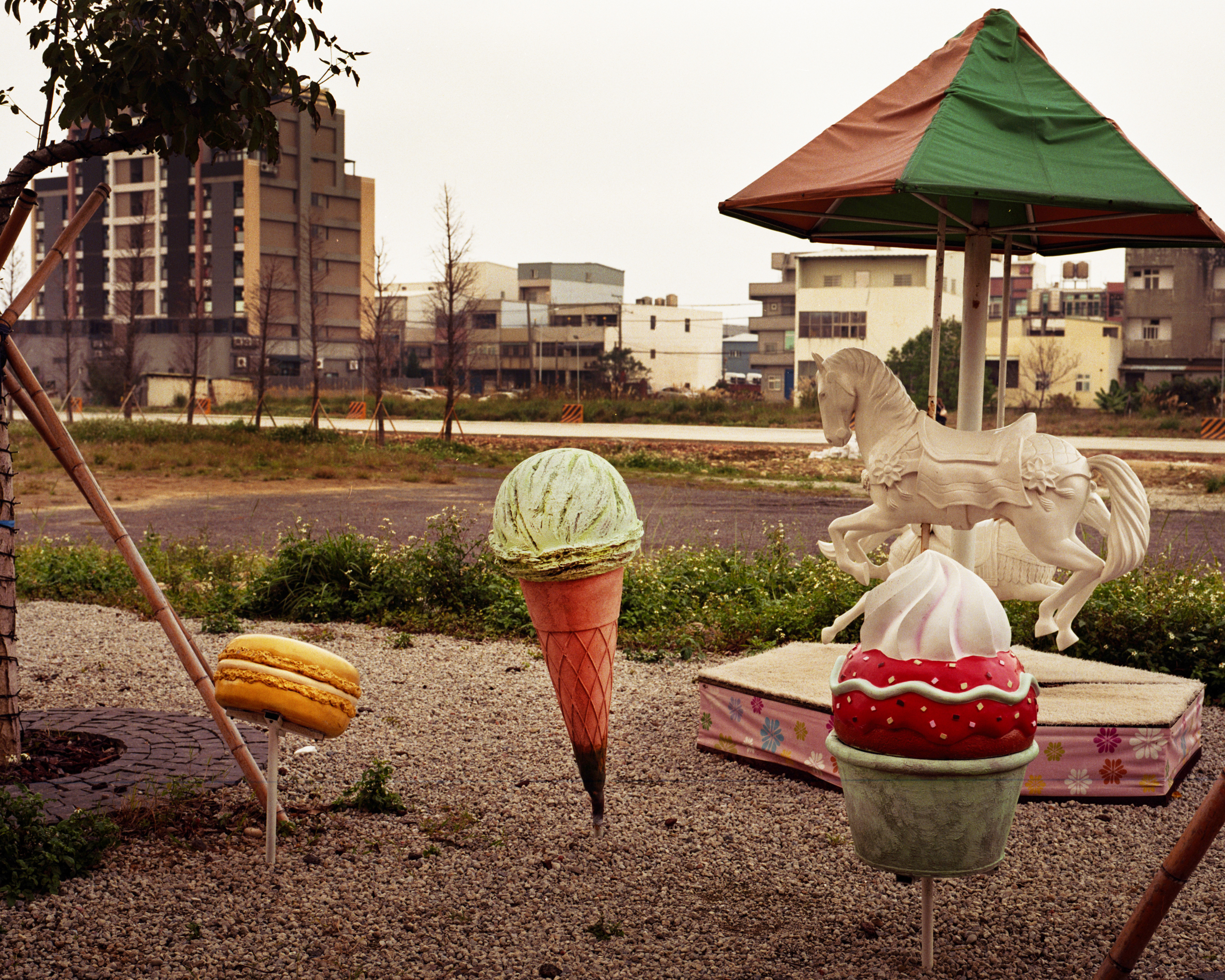 有些地方的消失,是沒有聲音的。幾年前再訪桃園的一處農村時,林俊耀原本熟悉的道路突然被封住了。圍籬架起、工程車進出,曾經可以直接走進村子的那條小路,如今必須繞很遠才能靠近。那一刻,他才意識到,有些地景的改變並不是慢慢發生,而是會在某個時刻突然被切斷。