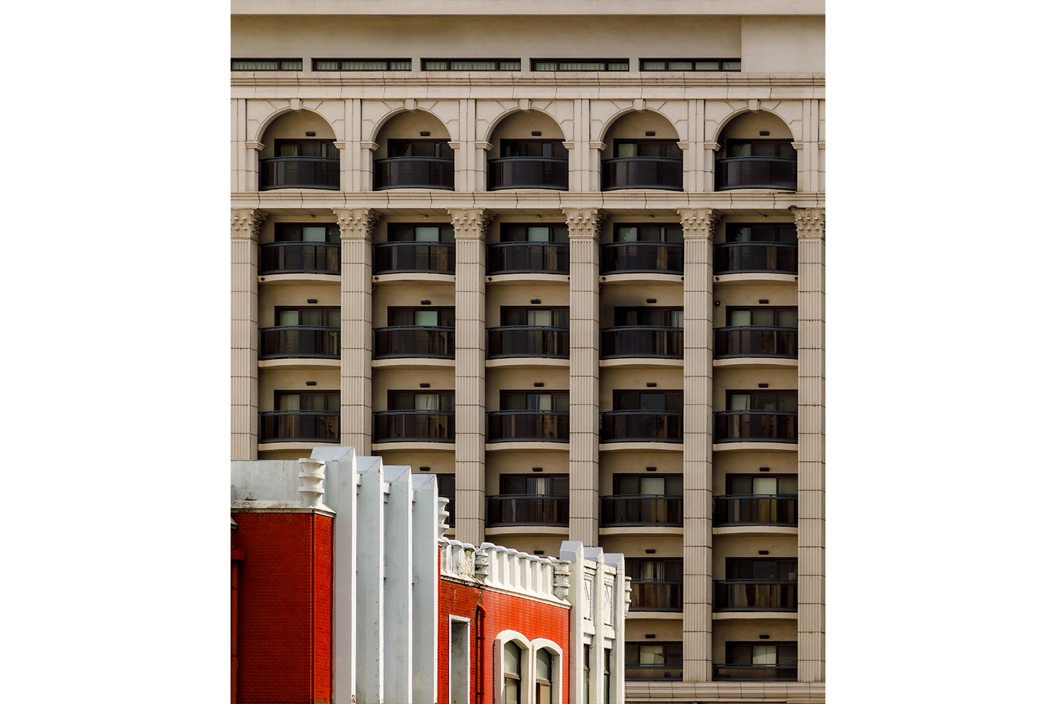 電影《末日之戰》(World War Z)中提及「第十人理論」(The Tenth Man):當九個人得出一致結論時,第十個人必須提出相反假設,以避免集體思考帶來的盲點。在城市攝影中,徐浩瀚正扮演著那樣的角色。當多數影像聚焦於宏偉建築或城市地標時,他的鏡頭反而停留在高樓與鐵皮屋並置的街景、不同年代建築交錯的城市紋理。