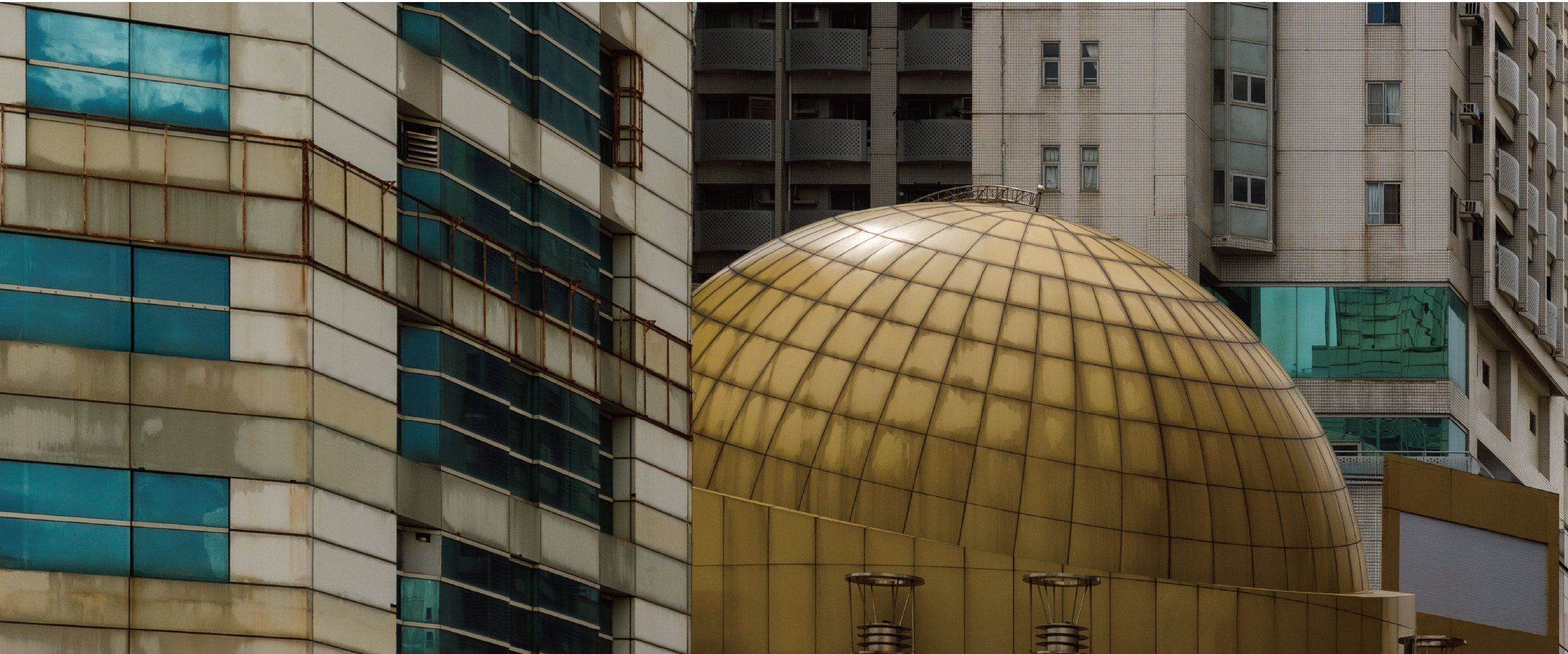 在浩瀚的鏡頭裡,城市不只是由一棟棟建築組成的集合體,而是一場不斷進行的對話。繼第一階段「視線模糊」的霧裡觀察後,進入第二階段「湊齊碎片」的創作,浩瀚將視角從朦朧的城市輪廓轉向具體而微的建築細節。